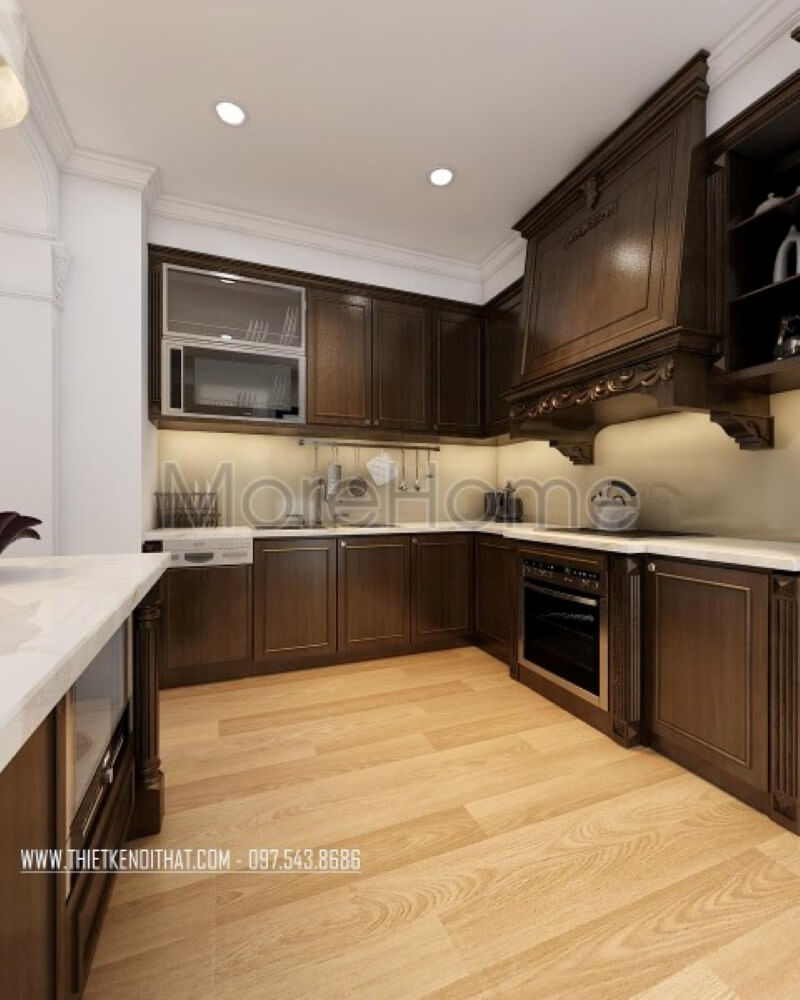 Thiết kế nội thất phòng bếp chung cư phong cách tân cổ điển
